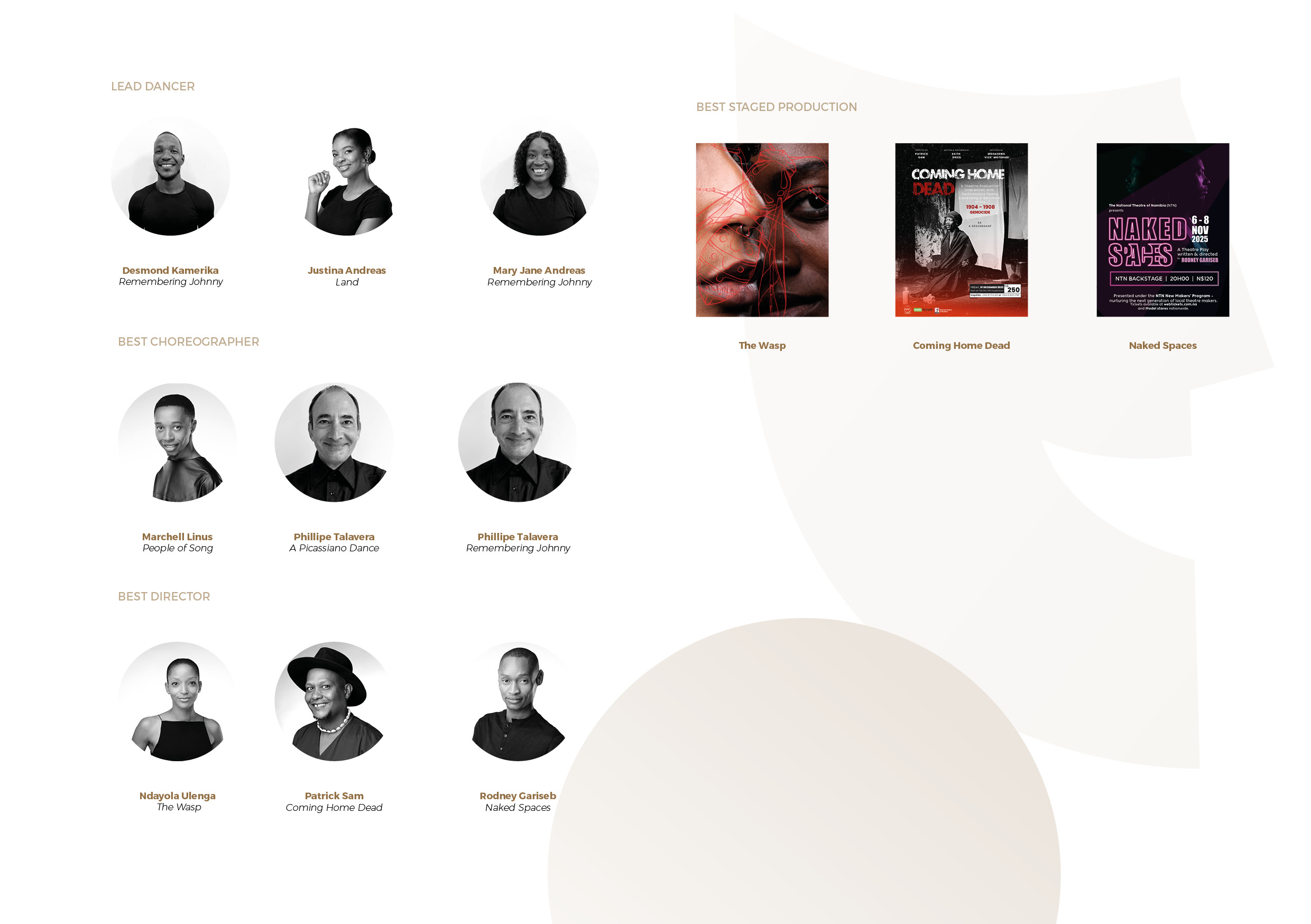 Conceived in 2010, the NTFAs were established to recognise, celebrate, and honour theatre practitioners, filmmakers, and contributors within Namibia’s creative and cultural sector.